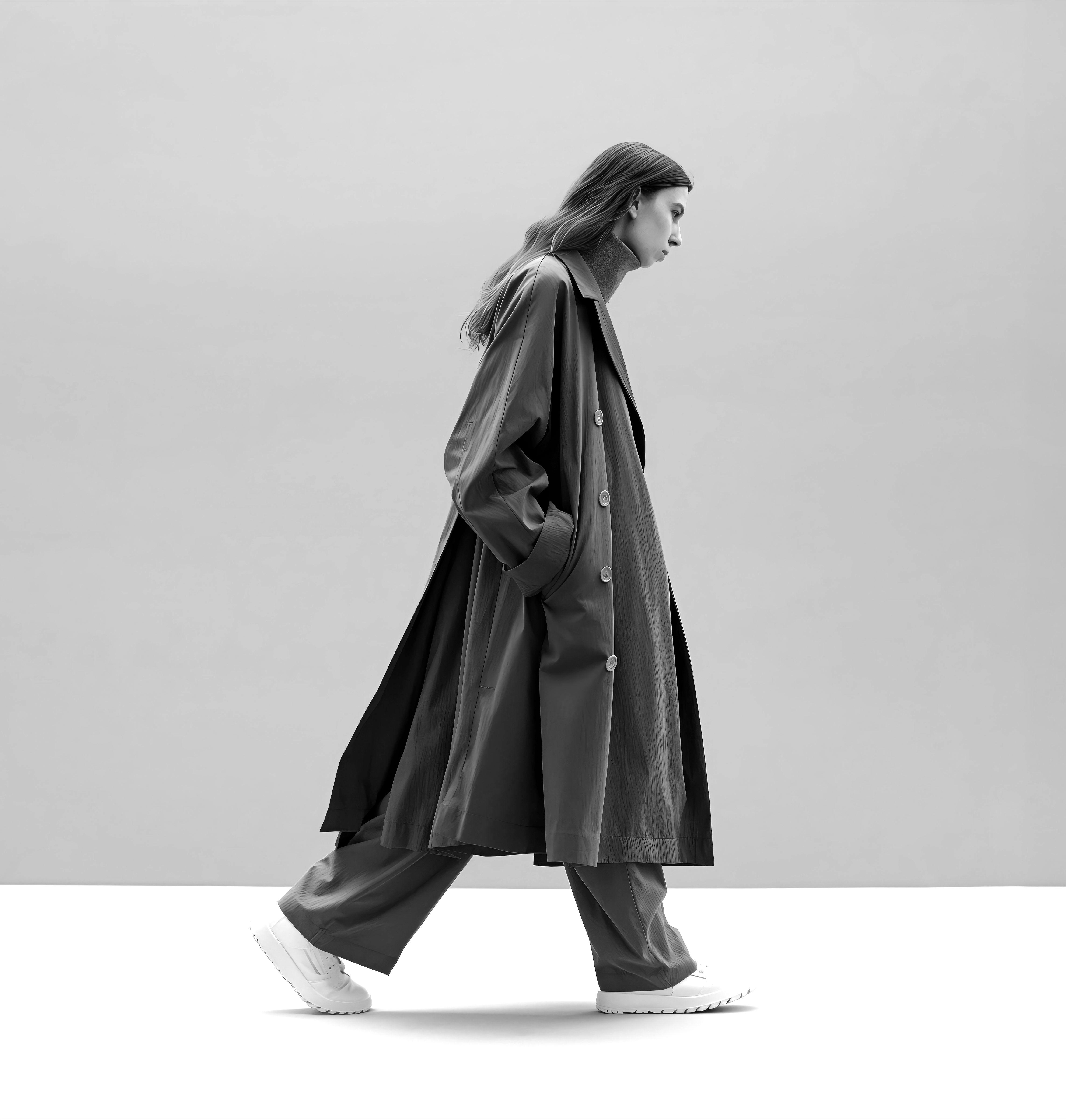 We strip everything down to its essence. No distractions, no excess. Every line, every stitch, a deliberate choice. Our designs are an exercise in precision—where function meets form, and motion meets meaning. This is not about decoration. It’s about structure. Architecture for the body. A new language of silhouettes, crafted for those who shape the future.